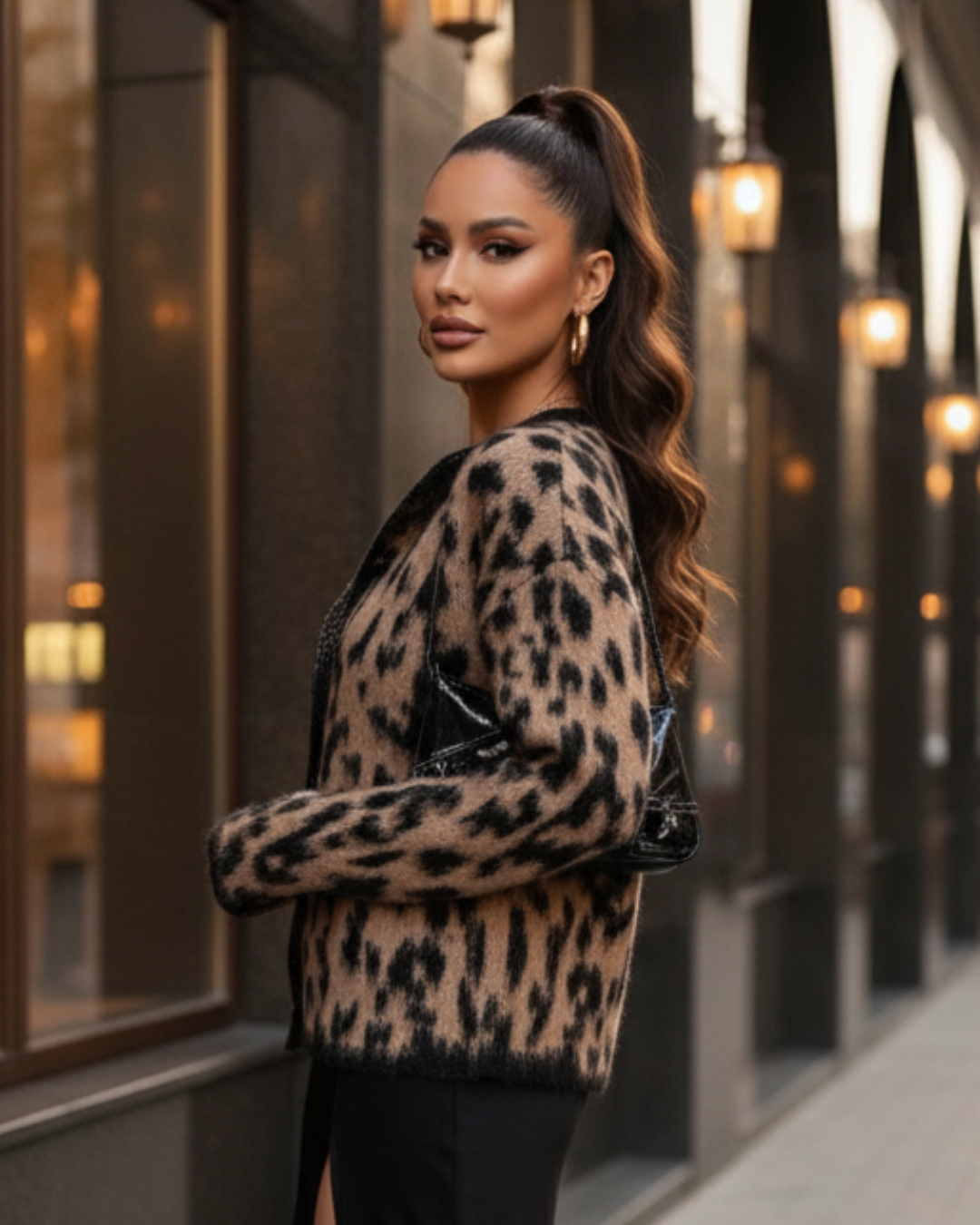Presentamos Leona: un cárdigan que lleva la fuerza felina al terreno de la elegancia.